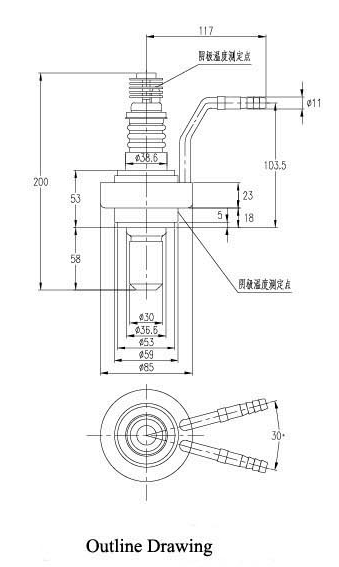 冷卻方式 | 管體水冷,陰極引出端強迫風冷 |