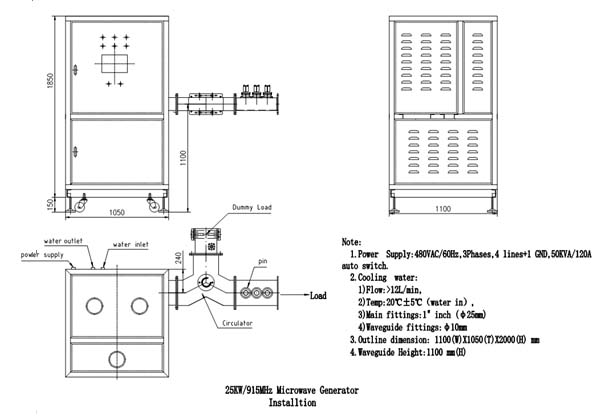 4)微波輸出功率: 2.5 ~ 25KW 連續可調。